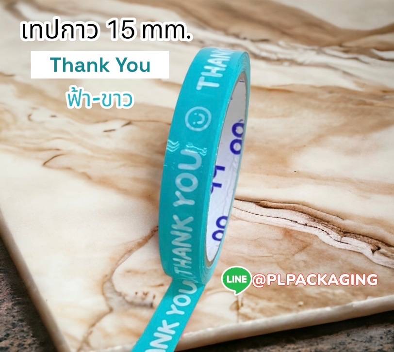 เทปกาว Thank You ฟ้า-ขาว ( 15 mm. )